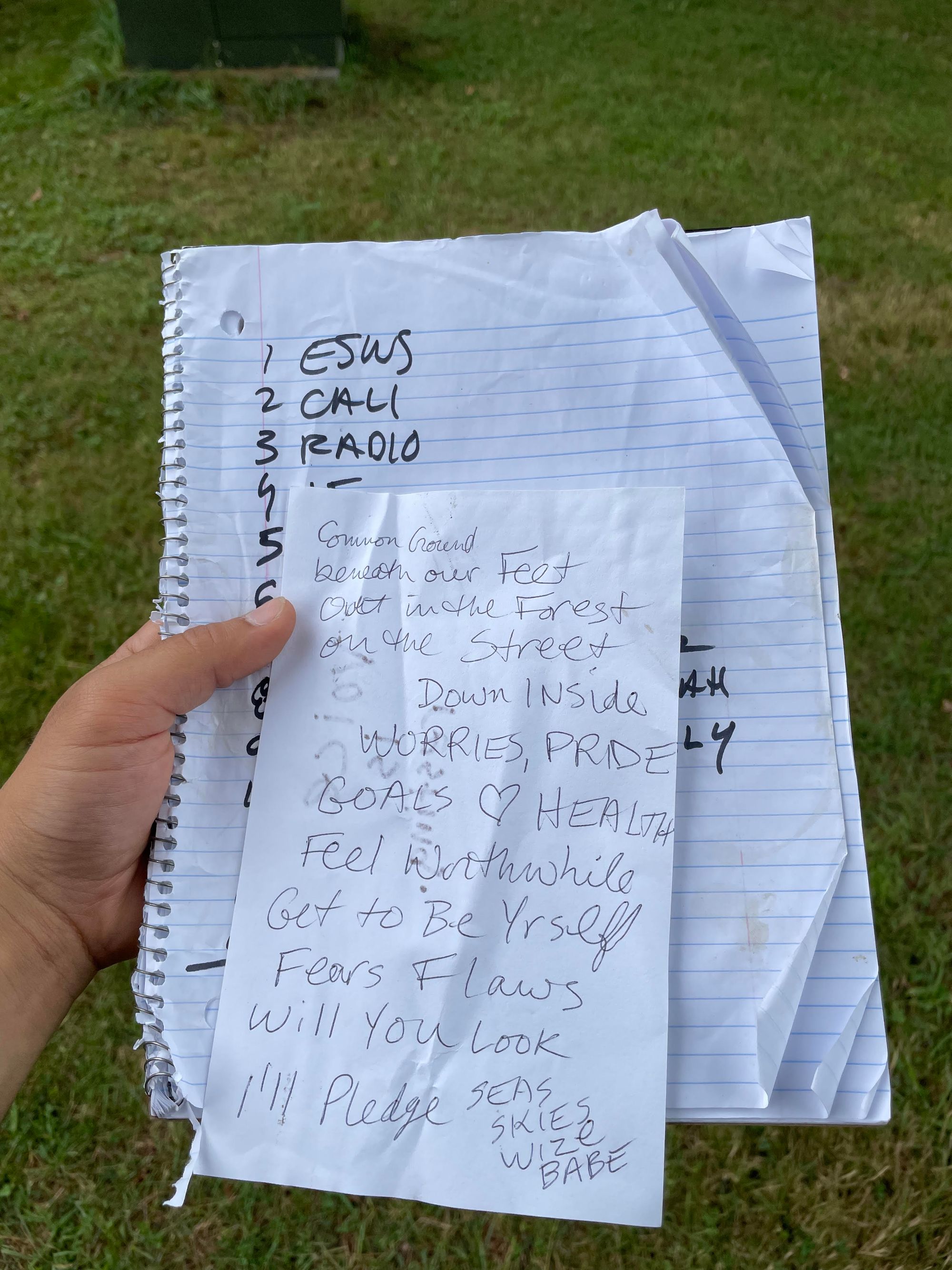 Right before our set, I was scrambling to shift gears from event producer to singer, taking deep breaths and focusing my positive energy. I grabbed a piece of paper and scrawled down a rhyming message I’d been composing in my head throughout the afternoon. Something that would feel truthful and would still resonate with as many people as possible.